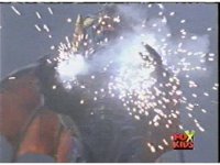 Whirlin' is sparkily punched some more, spark bursting after the punches cease. |