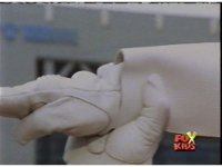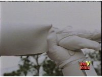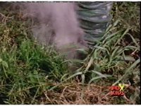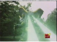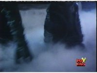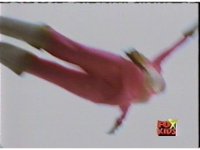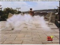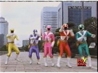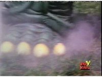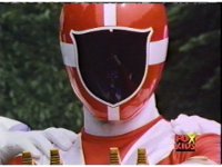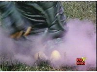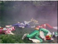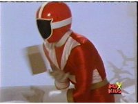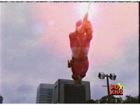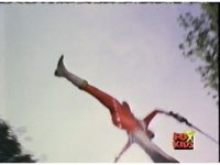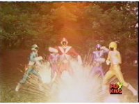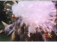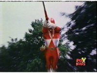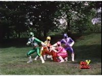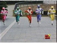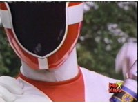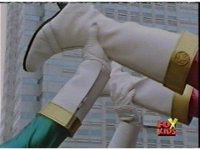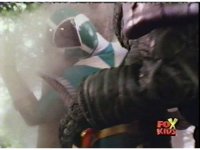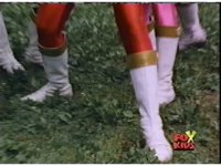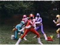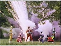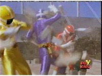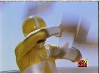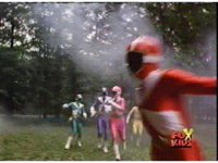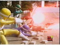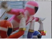 Cuts follow-up of monster firing beam which hits Pink demorphing her. Then a couple other shots of the Rangers reacting. |