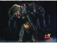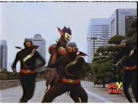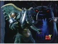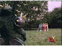 Zoom in as the Rangers race forth, Gold Beaked Monster lands before them, talks and gestures forth, summoning Batlings, who charge forth. |