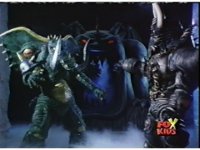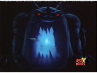 Diabolico points his staff forth and talks, Loki replies with a nod, pulls out a Demon Card, and hands it over to Jinxer, who takes it then throws it into the demon mouth statue, before motioning hands and chanting. |