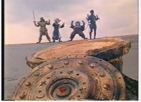 Zoom up from Megazord's feet as it stumbles back, smoking. |
