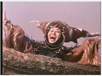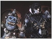 Camera zooms out from Rita's angry, screaming face on balcony as her henchmonsters appear upset by it. |