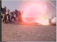 Yes, Lokar's materializing effects shots were used to 'create' the Morphers! They took the effort to remove the Japanese writing. There's some superimposing over US footage and the bright white flare in the center is US. |