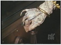 Zordon talks to our left while holding head in center, then shifts to looking at our right. |