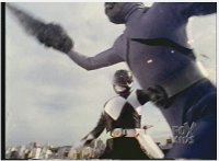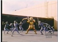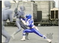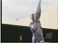 Goldar attacks Megazord with sword twice but it blocks each blow, only to be struck by a right leg kick. |