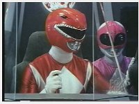 Rangers in cockpit appear to be happy at a successful hit against their enemy, Red pumping his fist, Black following suit, Blue snapping fingers then the fist thing, Pink clasping hands, and Yellow kinda shaking a bit. |