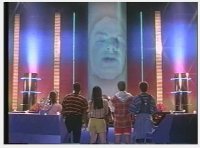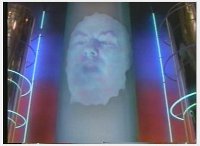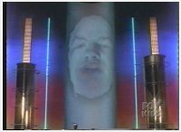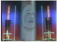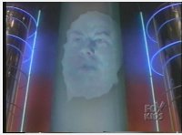 Zordon talks, looking at middle, then to the left, then middle again. |