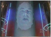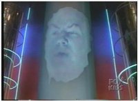 Zordon talks looking straight on, turning his head to our left briefly. |