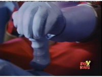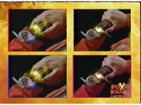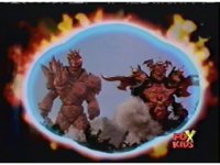 On the flaming viewing portal, zoom in on Trifire, with his new bladed weapon in hand. |