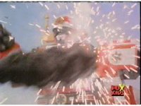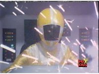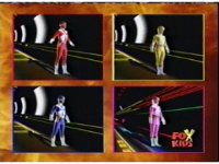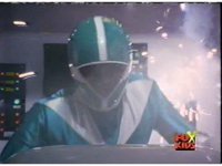 Lightspeed Megazord staggers back sparking, each Ranger's cockpit also sparks. |