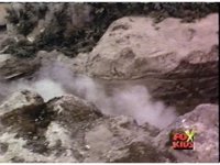 Steam rises as the rocky ground opens up and quakes. |