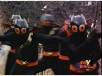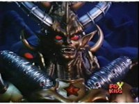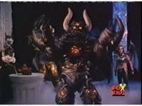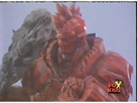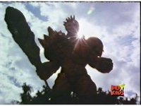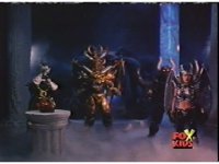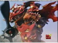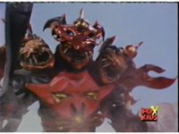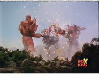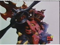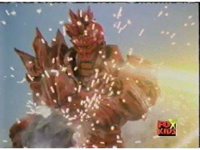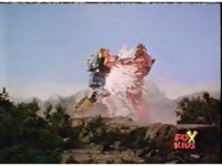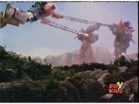 Lightspeed Megazord extends its Ladder Arms forth, grabbing each monster, but quickly loses control, getting lifted up by the pair and smashed sparkily against the ground. |