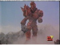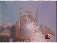Close on the Lightspeed Megazord quaking as it looks about. |