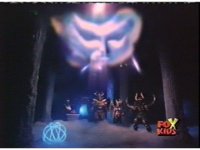 Queen Bansheera's face appears above the Demons, glowing then fading away to sparkles. |