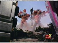 Magmavore & Trifire face Lightspeed Megazord, then charge at it. |