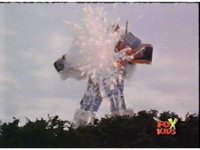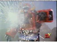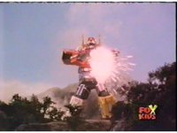 Supertrain Megazord punches its left fist forth, firing missiles from its fist. |