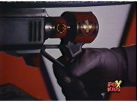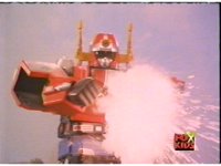 Supertrain Megazord's shoulder Gatling Blasters discharge their arsenal forth. |