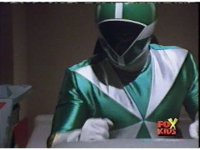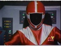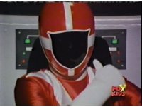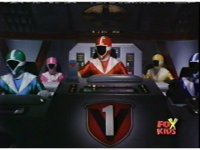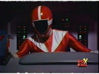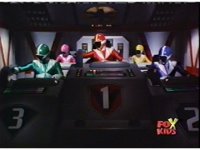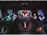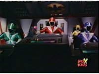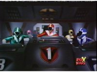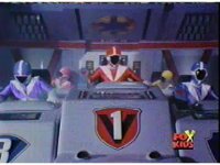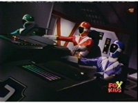 The Rangers land in the Supertrain cockpit, insert their Blaster Grips, Red then nod-talking. |