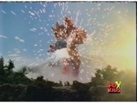 Red nod-talks and pulls the control stick trigger, Supertrain Megazord fires ice missiles from its left arm, hitting Mt. Jasmine and coating it with a sheet of ice, ending the volcanic eruption. |