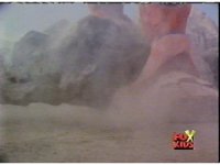 The mountain before the Lightspeed Megazord quakes and has a rockslide. |