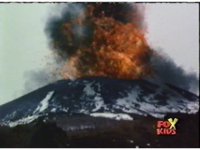 Mt Jasmine erupts, spewing flames skyward. |