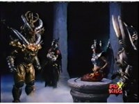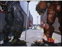 Demonite talks, then he and his fellow Demons aim their weapons forth and begin to slowly march toward the Rangers. |