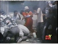 Cuts follow-ups of Red looking at injured civilians, talking, then everyone departing scene. |