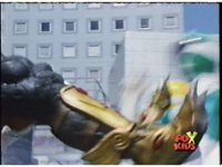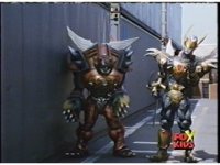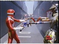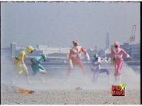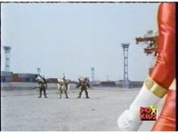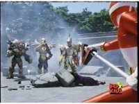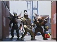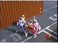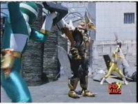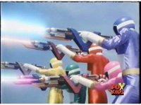 The Rangers regroup, holding V-Lancers ready, as the Demon trio also regroups. |