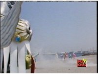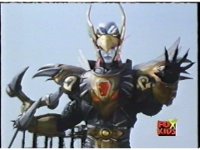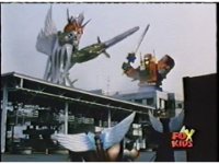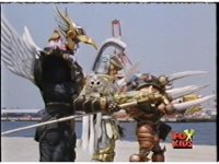 Falkar talks as he & Thunderon watch Lightspeed Megazord & Demonite prepare to face off. |