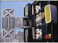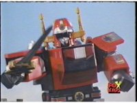 Supertrain Megazord punches its right arm forth, firing blasts from the turbine. |