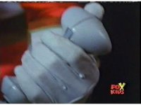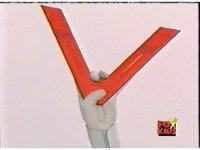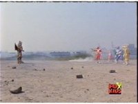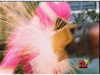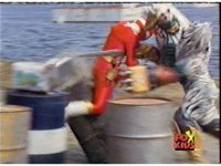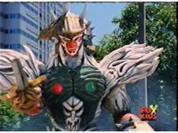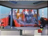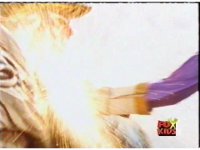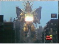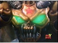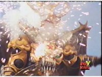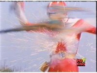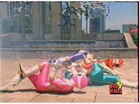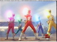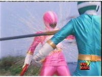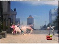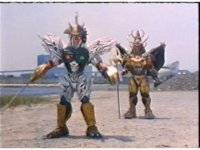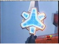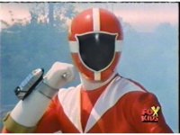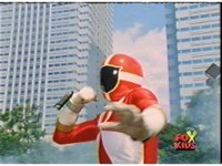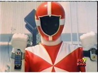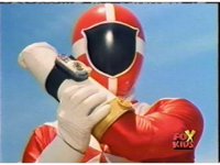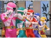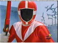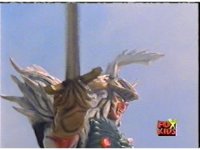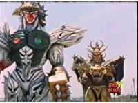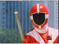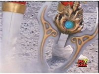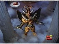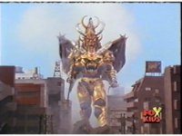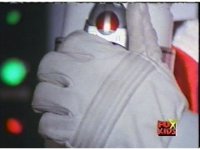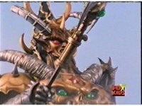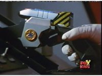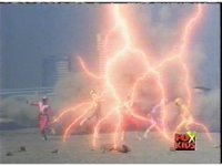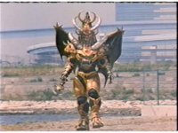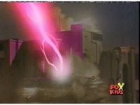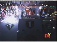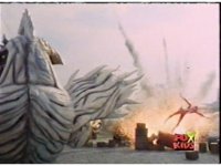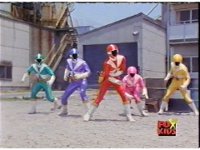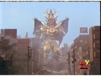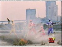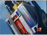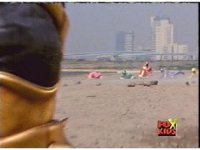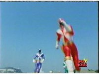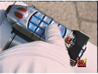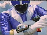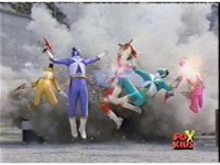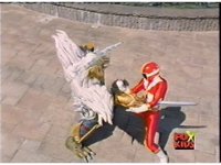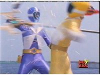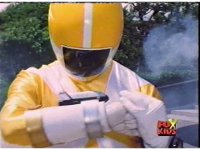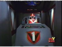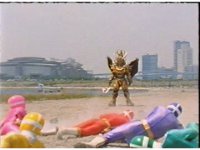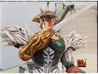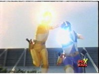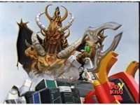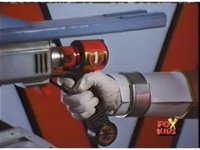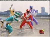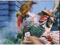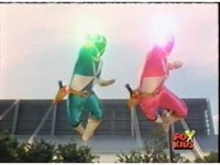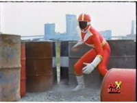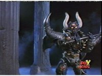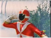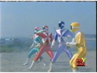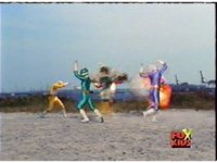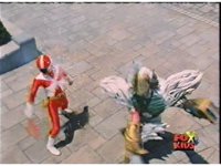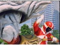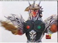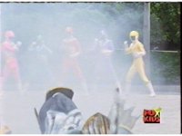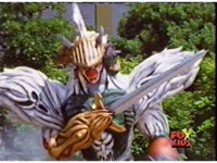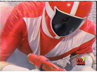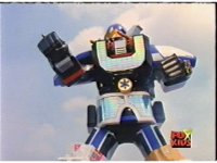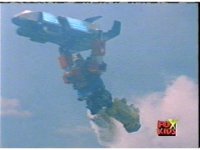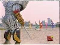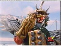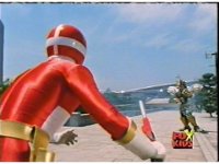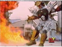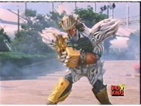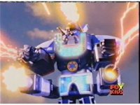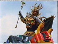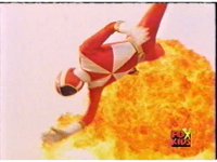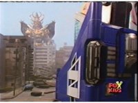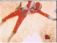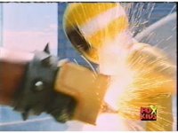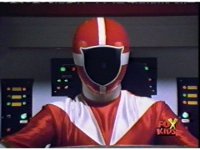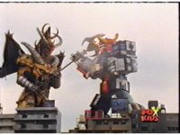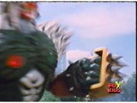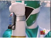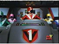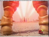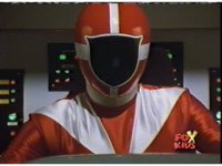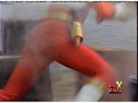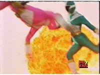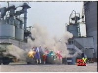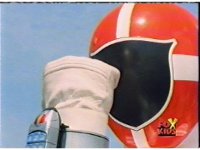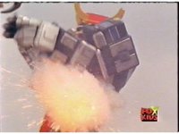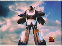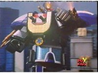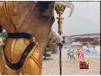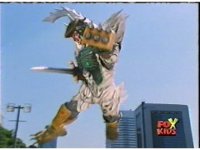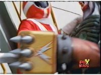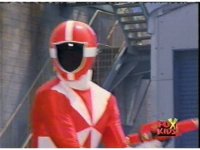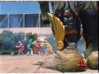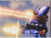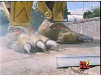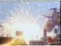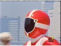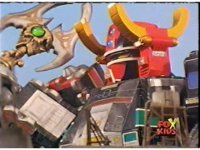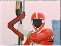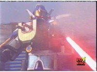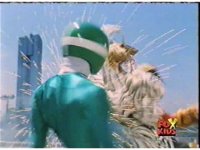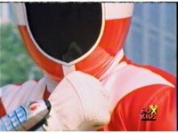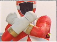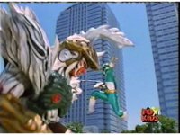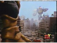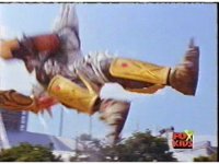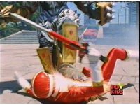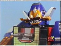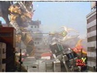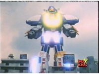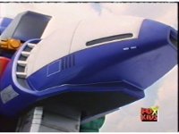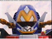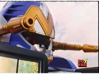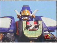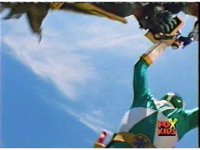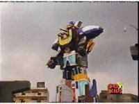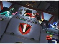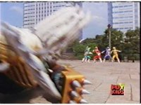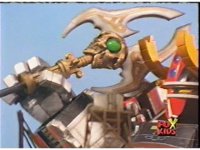 He's visorless in shot 1. Cuts follow-up Zord transformation bit. |