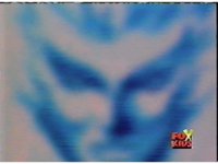 Queen Bansheera's wavering image becomes a swirling spirit, flying backwards through space. |