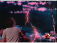 Dark, stormy clouds roll up and over us, and a mother and two sons, as reddish lightning crackles about. |