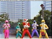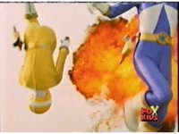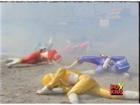 Red leads the team in pressing 5-5-5- activate, all then firing Booster Beams forth, spark bursting Troika until he collapses and falls dead. |