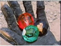 Diabolico talks, holding his left hand up, with three gems in his palm. He tosses them forth, we see images of Falkar, Demonite, & Thunderon before they merge into Troika. |