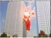 Diabolico fires a chest-beam forth into Lightspeed Megazord, causing it to smash through a building, before ending up crashing into another. |