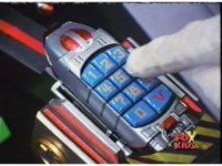 Red presses a red shiny button, causing a docking port to pop out of the console, where he inserts his Battle Booster, where he presses 3-5-6 and hits activate. |