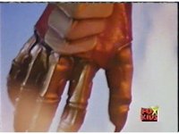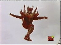 Cuts follow-ups of Red leaping up and chopping off one of the monster's horns. |