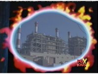 Exterior of the power plant is visible in the flamey viewing portal. |