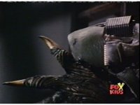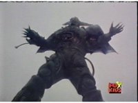 Shockatron talks, then gestures arm, pan down to Batlings rushing forth. |