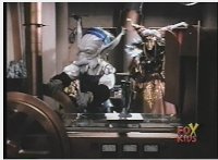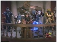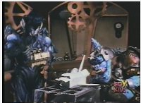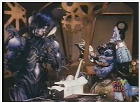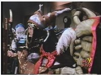 Rita turns around and talks to Goldar while Squatt & Baboo mess around with remote. |