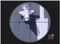 Zoom out from small shuttle to Baboo & Squatt, the former smacking the latter in the head. |