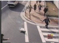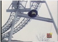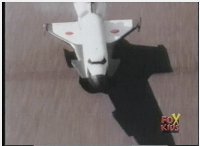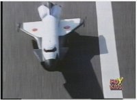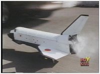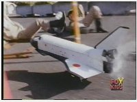 A pair of Asian construction works stumble as Shuttle makes a pathetic attempt at hovering on its trip. |