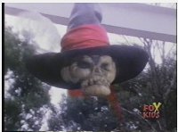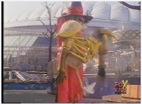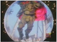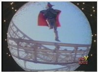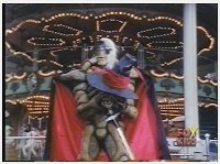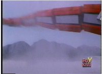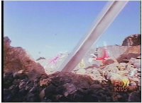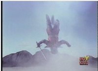Red Ranger is lifted out of Time Warp dimension by Giant as the other Rangers rush to the spot he was taken from. |