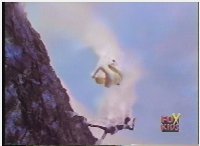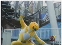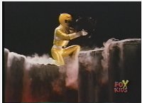 Yellow & Black Rangers flail about as they fall over the side of a cliff. |