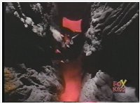 Tyrannosaurus Dinozord's head slowly rises from the molten red ground. |
