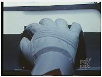 Close up on Baboo's hand as he grips control box's stick forth. |