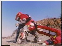 Why was the shot of the T-Rex's tail hitting ground to aid in lifting the Zord up cut out? No idea. |