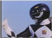 Black Ranger responds to Red, gesturing arm and giving those behind him a thumbs up. |