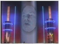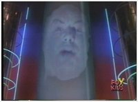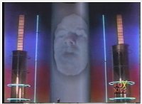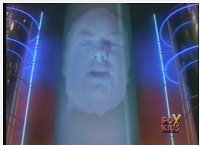 Close-up shot of Zordon talking straight on, deviating his gaze just a little to our left briefly. |